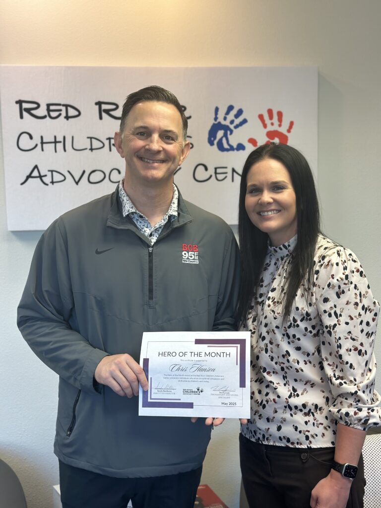 At Red River Children’s Advocacy Center, we believe in recognizing the incredible individuals who go above and beyond to support children and families in our community. Each month, we honor a Hero of the Month—someone who exemplifies compassion, dedication, and advocacy for child protection and healing. These outstanding individuals play a vital role in making a difference, whether through their professional work, volunteer efforts, or outstanding commitment to creating a safer, brighter future for children.